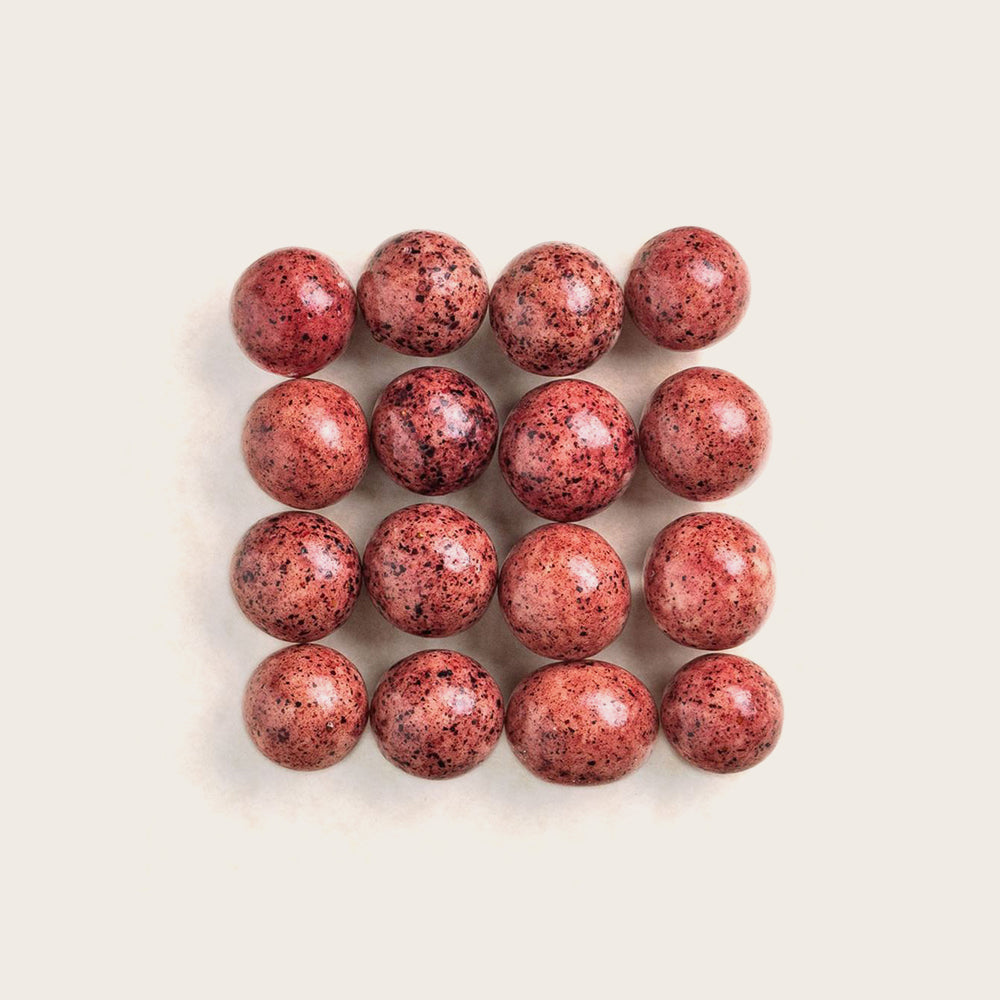 As the whole "Nuts with Greek yogurt" series, this snack tastes like a fruity chocolate: Chocolate & Greek Yogurt covered Blueberries!